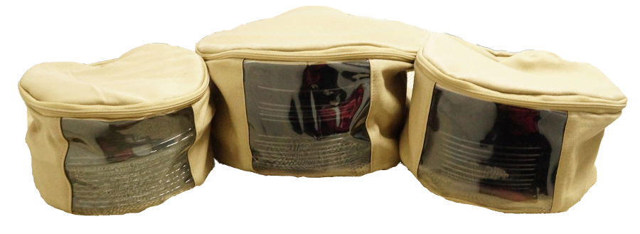 Confeccionado em sarja pesada com visor, este conjunto é a solução perfeita para manter seus pratos organizados e protegidos.
